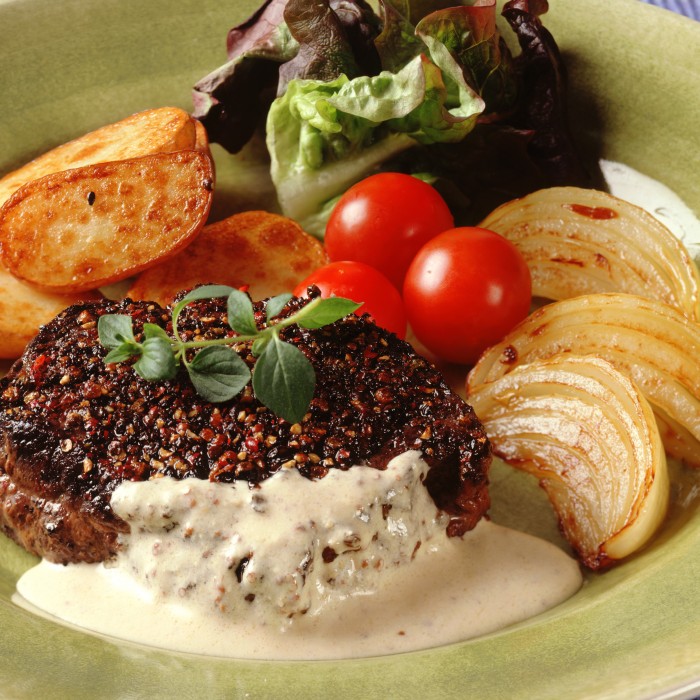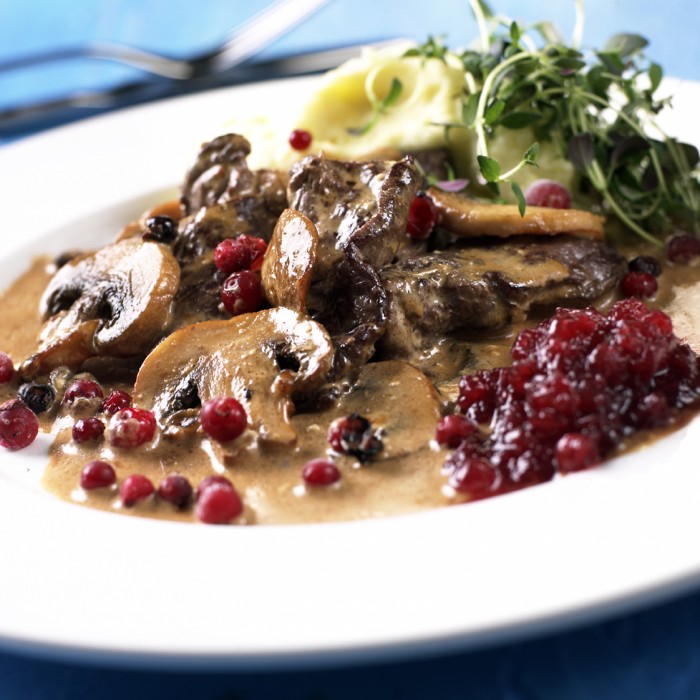 Surret hvalkjøtt med bacon, rømme og allehånde.